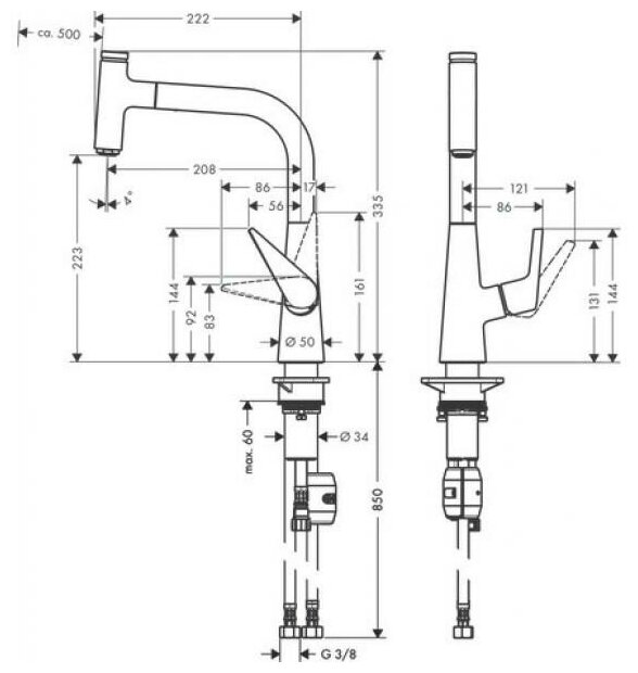 Смеситель для кухни hansgrohe Talis Select M51, 220, 1jet 72822000 с вытяжным изливом