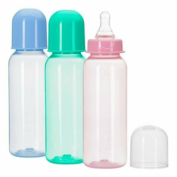 Купить Бутылочка Курносики цветная с силиконовой соской 250 мл