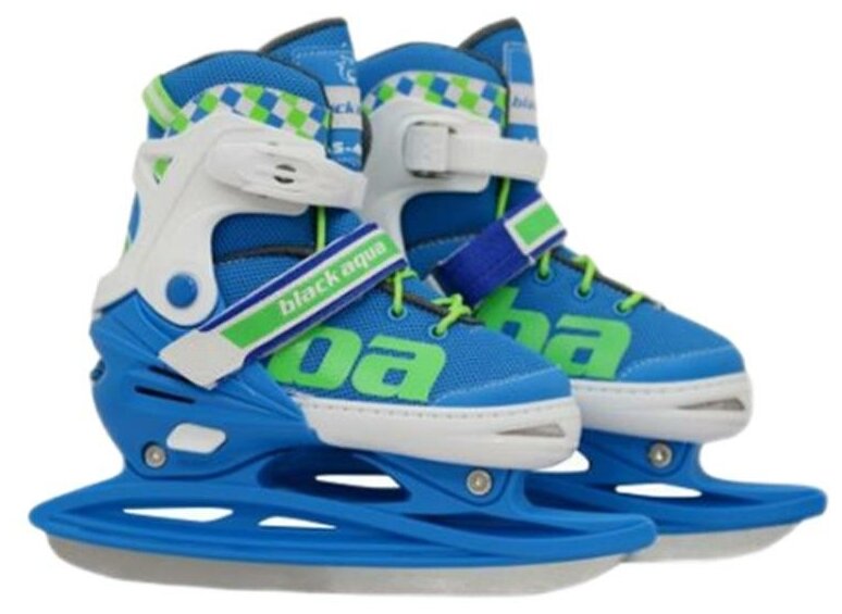 Коньки + ролики/ Коньки подростковые ледовые раздвижные с роликовой платформой BlackAqua AS-409 голубые/салатовые размер 35-38 интересное: