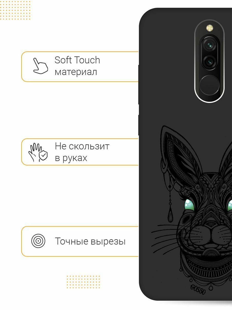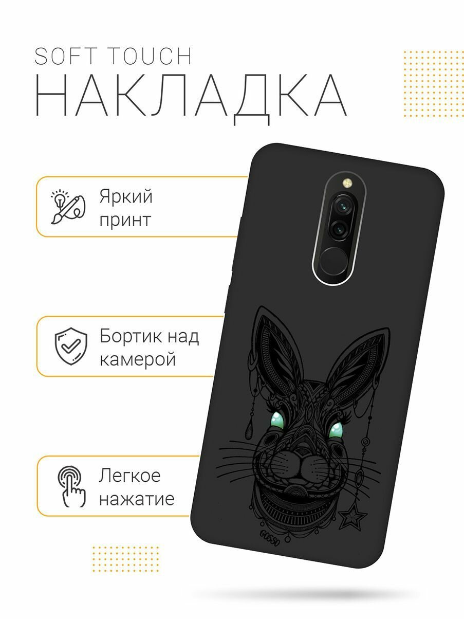 Ультратонкая защитная накладка Soft Touch для Xiaomi Redmi 8 с принтом "Grand Rabbit" черная интересное: