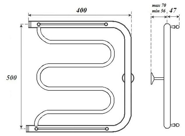 Полотенцесушитель водяной Point Фокстрот 50x40, с полотенцедержателем