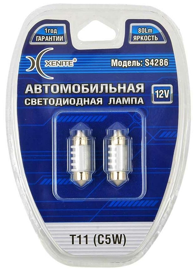 XENITE 1009483 Лампа светодиод 12V SV8.5 Т11х28 Xenite S4286 4SMD 44LM белая 2шт
