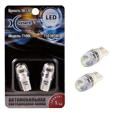 XENITE 1009273 лампа светодиодная 12v т10 w2.1x9.5d w5w t109l (яркость 90 lm) блистер 2 шт\