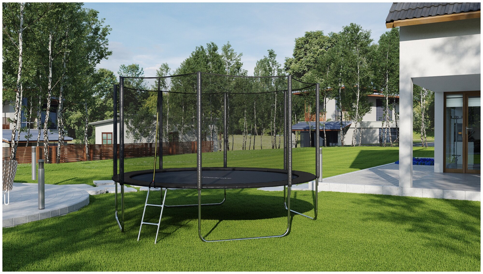 Батут GetActive Jump 12FT с лестницей и внешней сеткой 12472S2Y-L черный интересное: