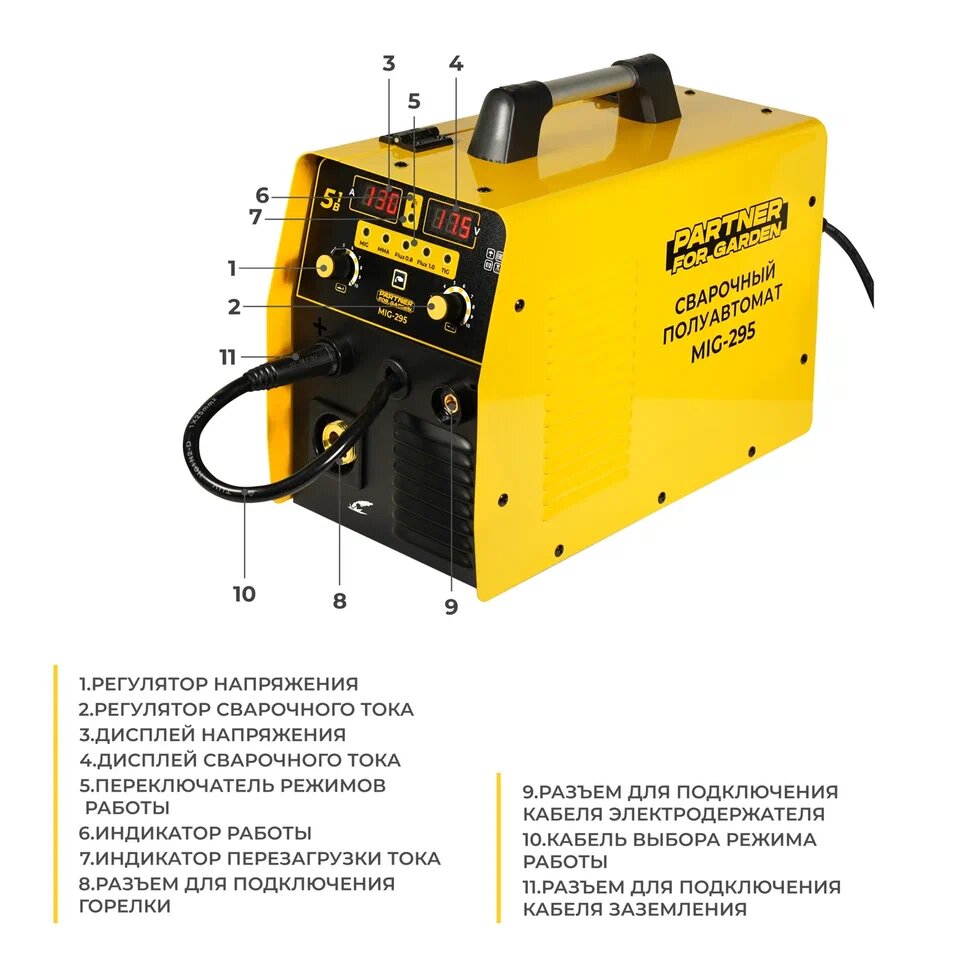 Сварочный аппарат инверторного типа Partner for garden MIG-295, TIG, MMA, MIG/MAG интересное: