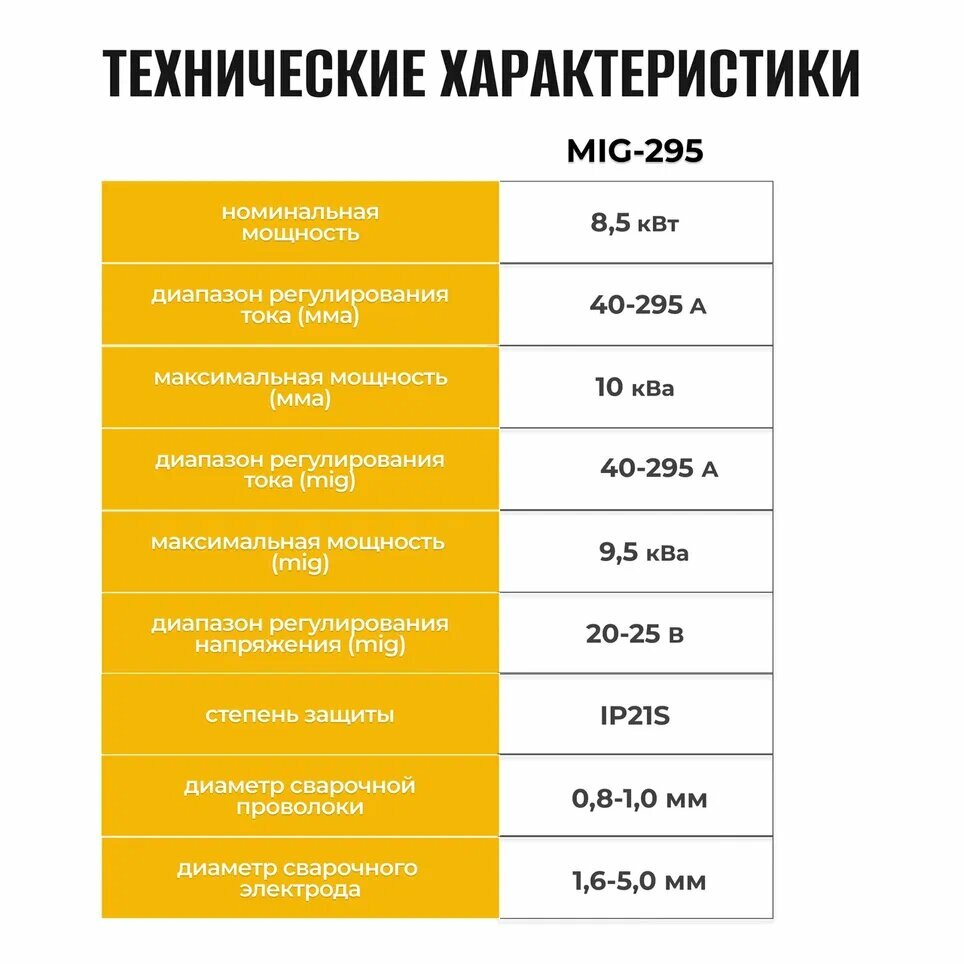 | Сварочный ток (MIG/MAG) | 40-295 А |