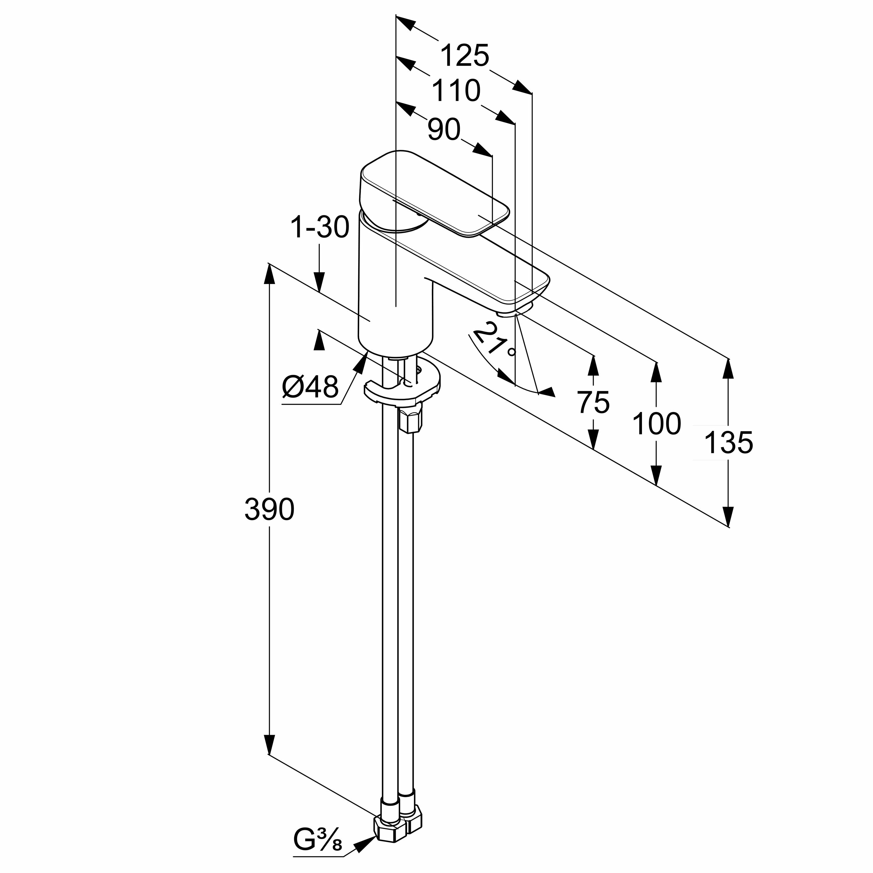 KLUDI PURE&STYLE однорычажный смеситель на умывальник 75, черный матовый, арт. 400283975