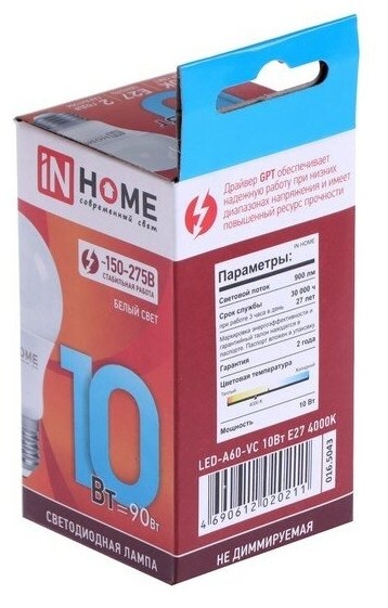 Ниже Вы можете прочитать отзывы на Лампа светодиодная LED-A60-VC 10Вт 230В Е27 4000К 900Лм IN HOME, ознакомится с подробными характеристиками, посмотреть интересные обзоры и фотографии на Лампа светодиодная LED-A60-VC 10Вт 230В Е27 4000К 900Лм IN HOME.