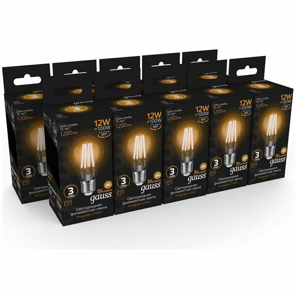 Филаментная лампочка Gauss A60 2700K (12 Вт, E27) 10шт (102902112)