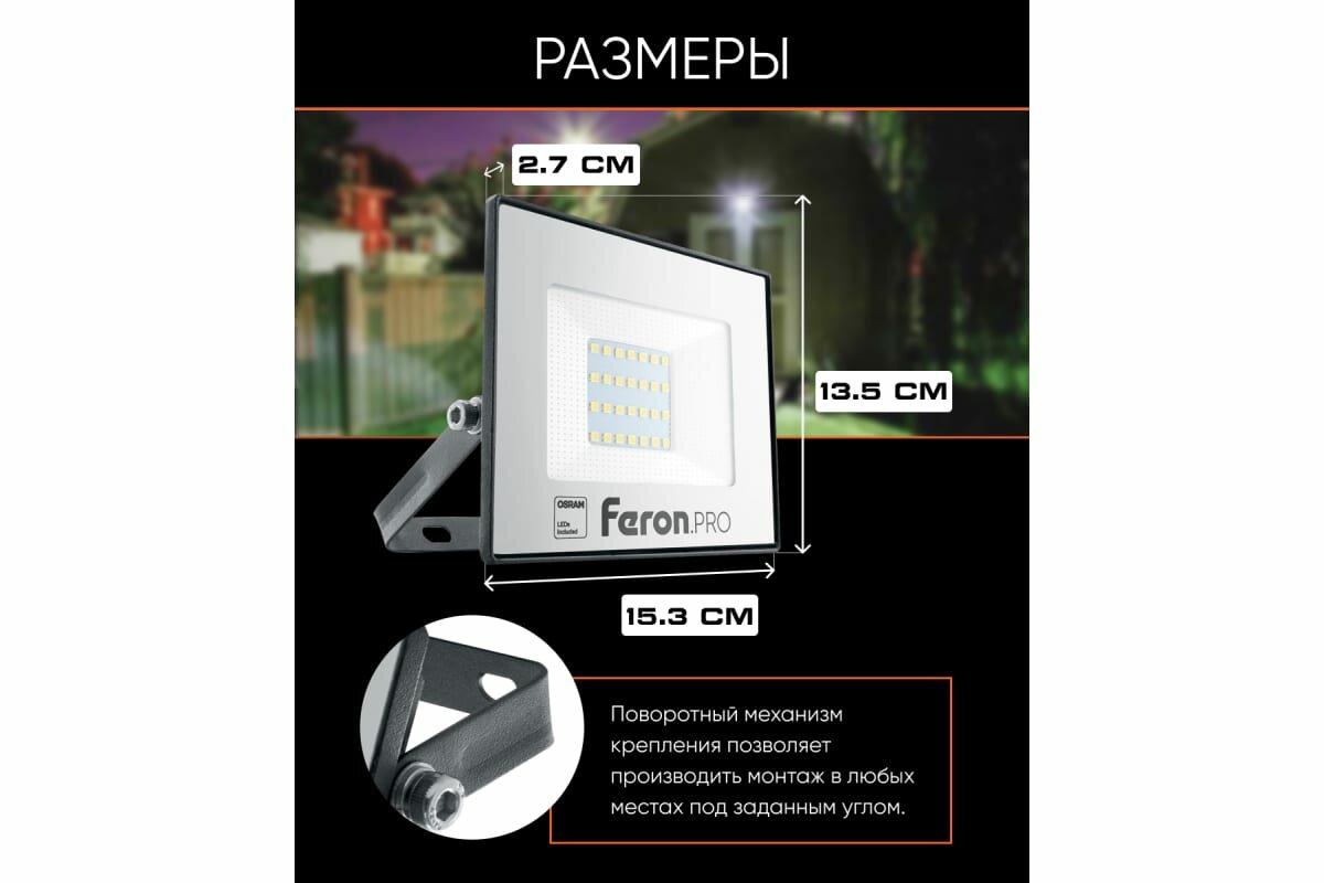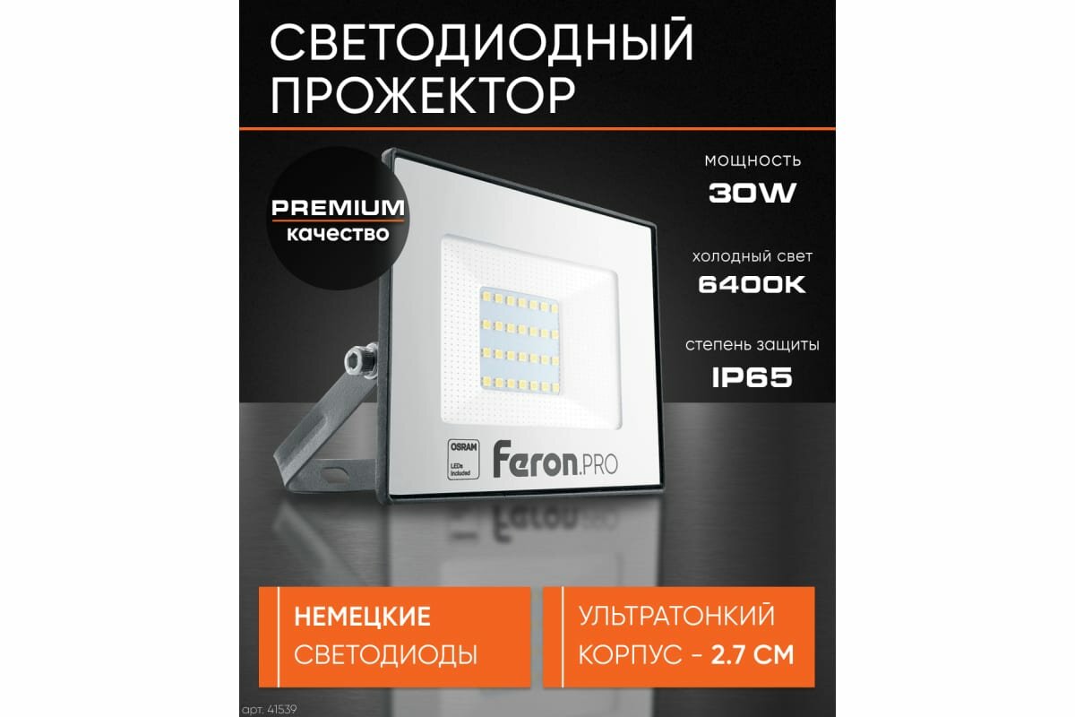СохранитьПрожектор светодиодный ДО-30w 6400К 3000Лм IP65 черный Feron.PRO | код 41539 | FERON (1 шт.) интересное: