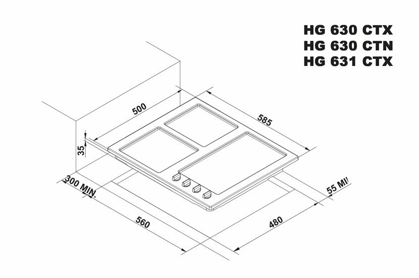 Встраиваемая газовая панель KORTING HG 631 CTX