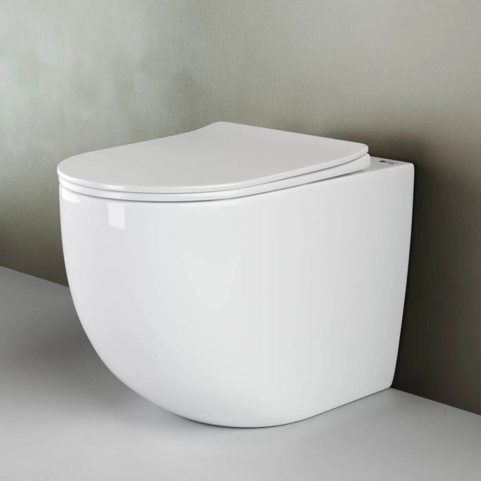 Приставной безободковый унитаз с сиденьем микролифт Ceramica Nova Mia CN1810 интересное: