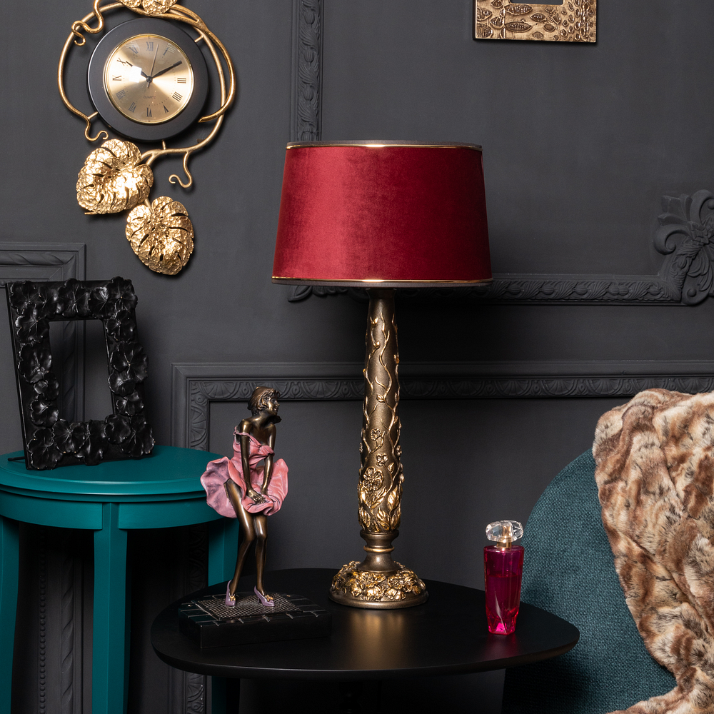Купить Настольная лампа Bogacho Лето бронзовая с бордовым абажуром Тюссо Конфети