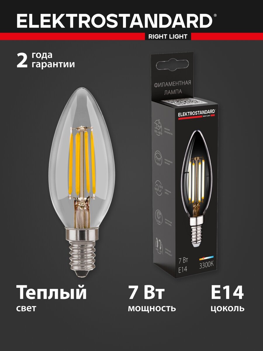 Светодиодная лампа Elektrostandard, свеча 7W 3300K E14 C35 прозрачный BLE1411 a049066 интересное: