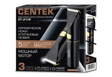 Машинка для стрижки волос Centek CT-2119, 3 Вт (работает от аккумулятора/сети)