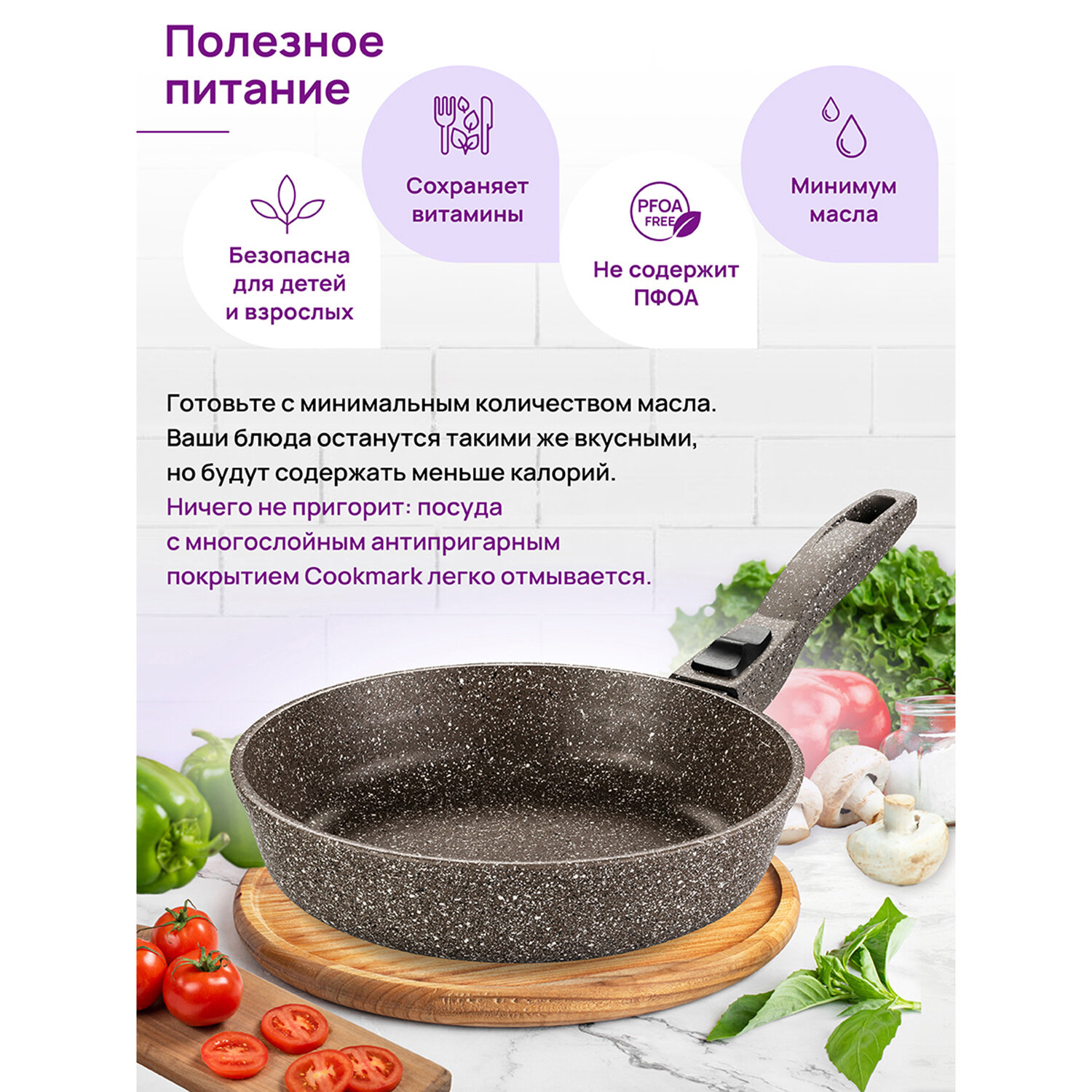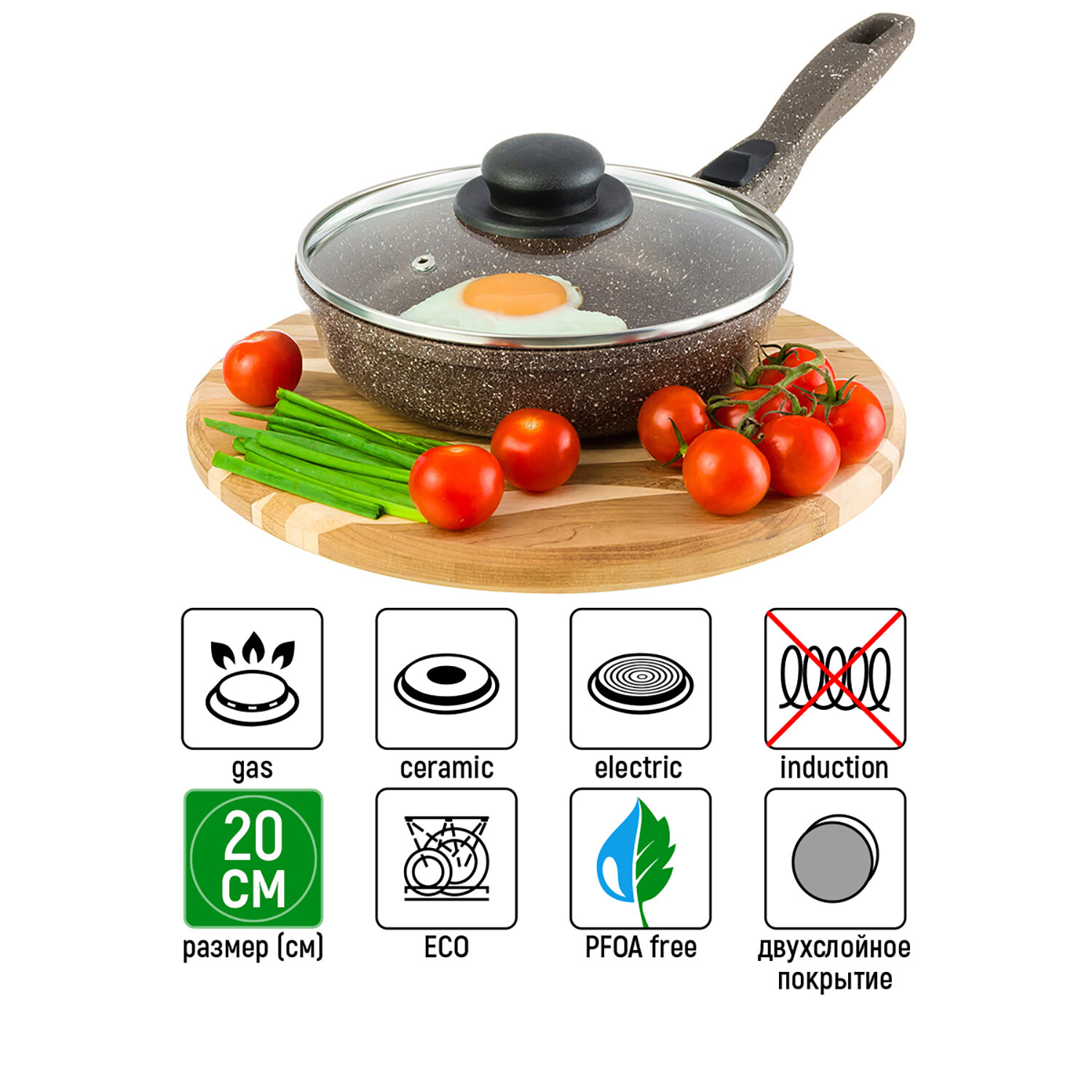 Сковорода глубокая 20 см Elan Gallery гармония вкуса Коричневый опал с крышкой D20, съёмная ручка интересное: