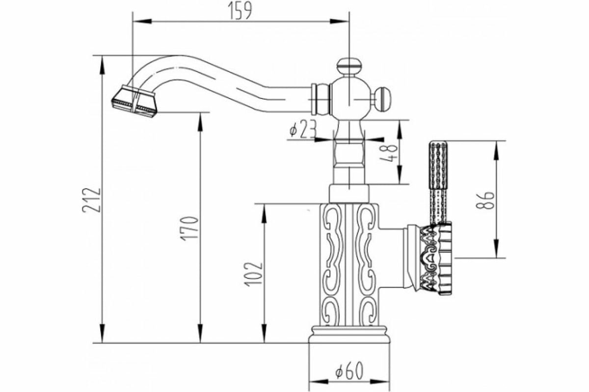 Смеситель для раковины без донного клапана Zorg Antic A 114U-BR
