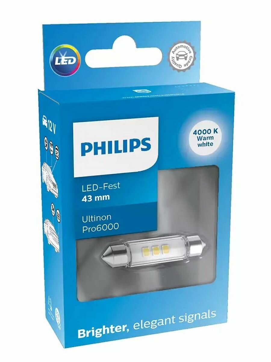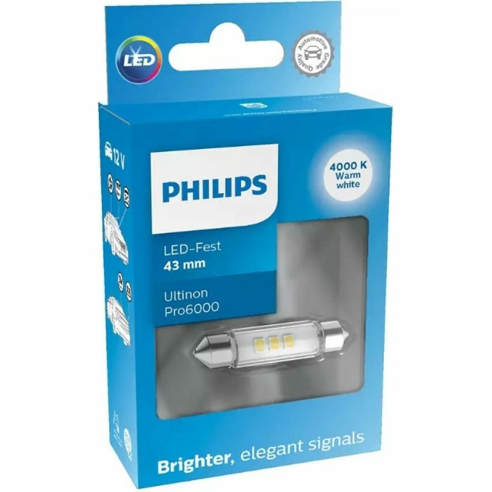 Сигнальная лампа PHILIPS C5W (SV8.5/8) LED 43мм White Ultinon Pro6000 4000K 100лм 12V, 1шт интересное: