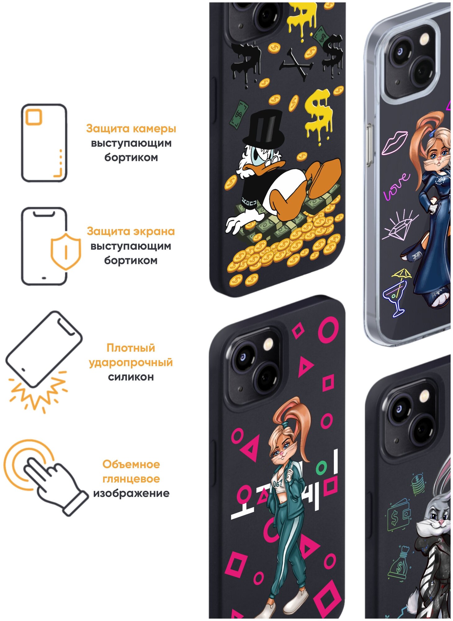 | Плюсы: | Качество хорошее плотный силикон , картинка веселая ? покрытие глянцевое . |