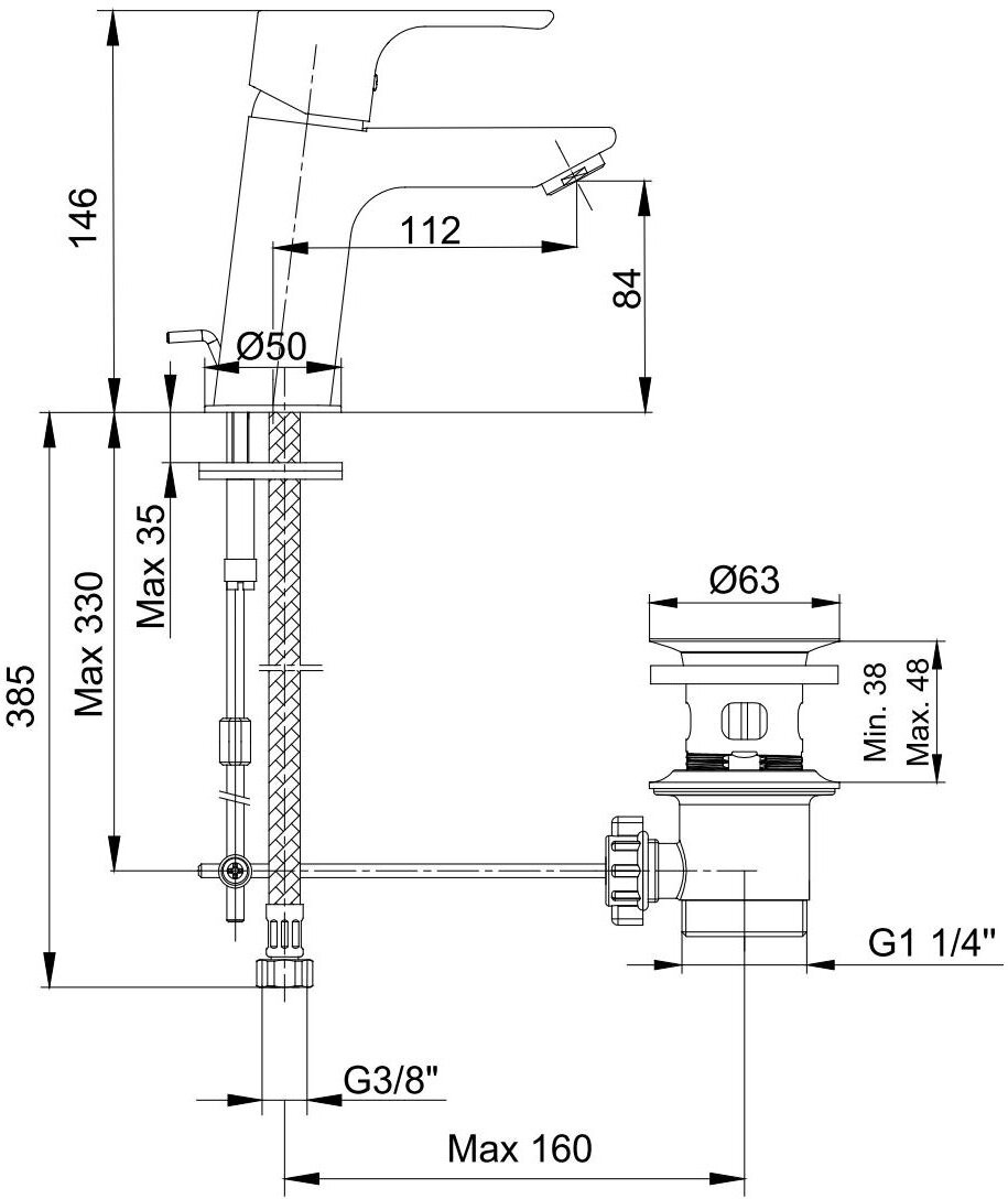 Смеситель E.C.A. Niobe 102188056EX для раковины с донным клапаном