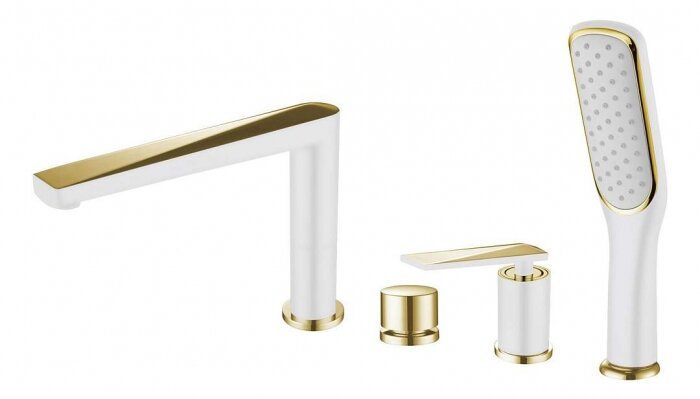 Смеситель врезной на борт ванны VENTURO белый + золото 380-W