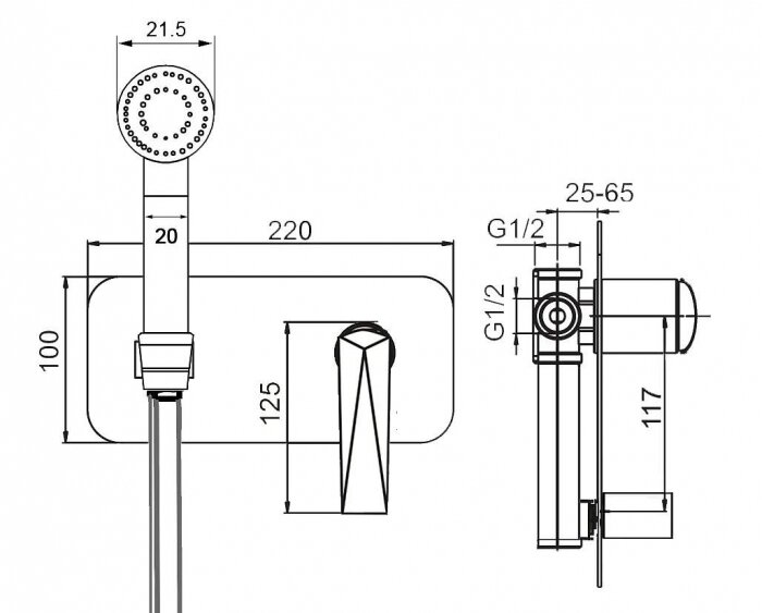 Гигеническая лейка со смесителем VENTURO черный + хром 377-B