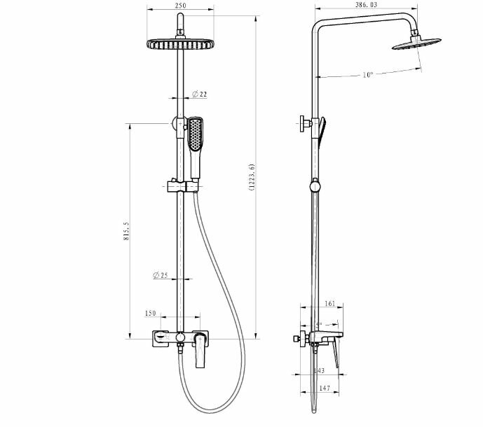 | Дополнительная информация | цвет черный/золото; высота стойки для душа: 1224 мм; ширина верхнего душа: 250 мм |