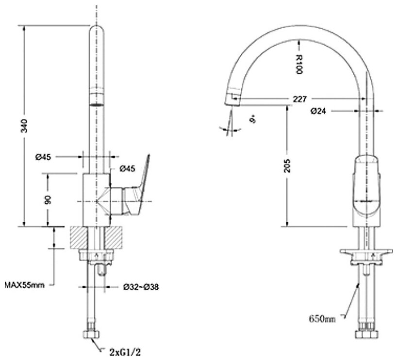 | Длина излива | 227 мм |