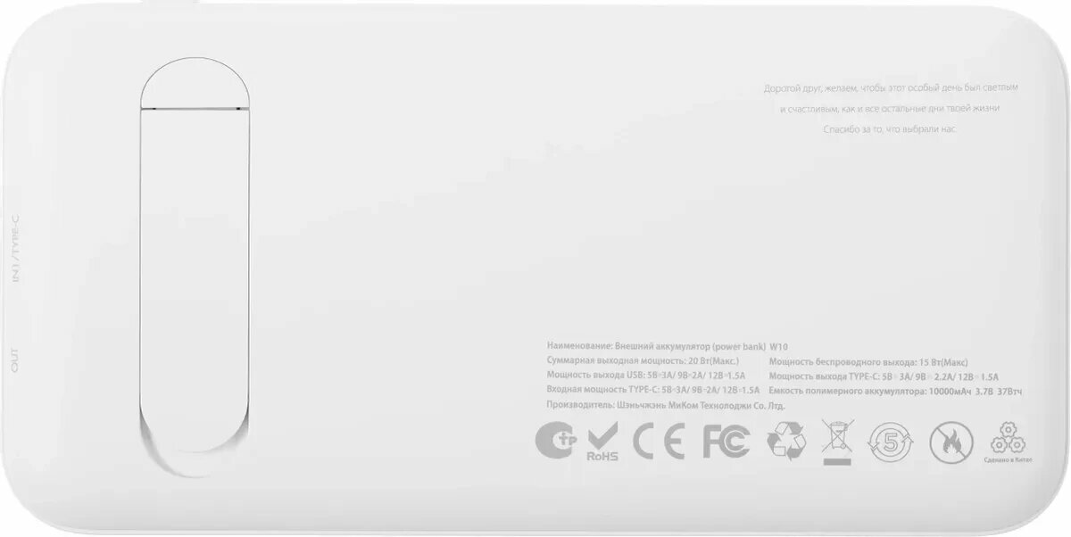 Портативный аккумулятор SOLOVE W10 10000 мАч, белый