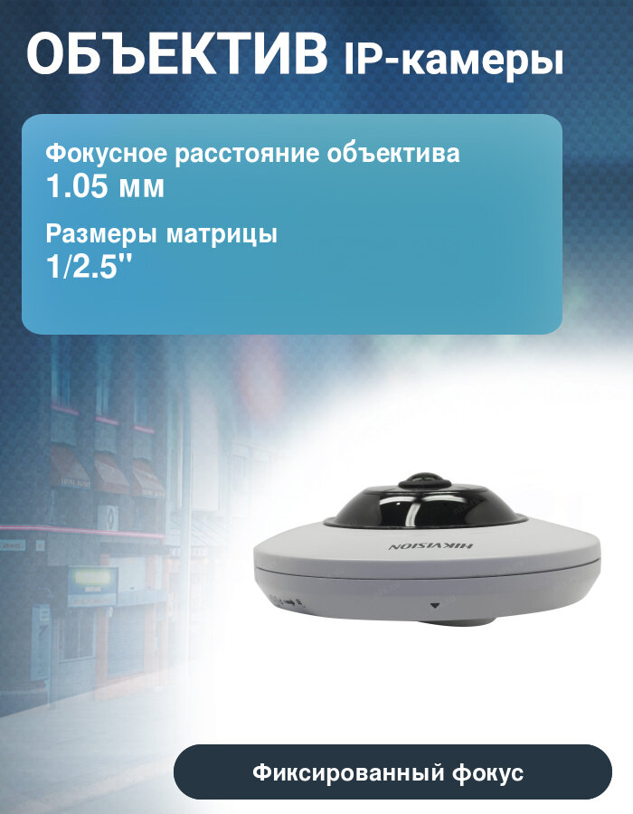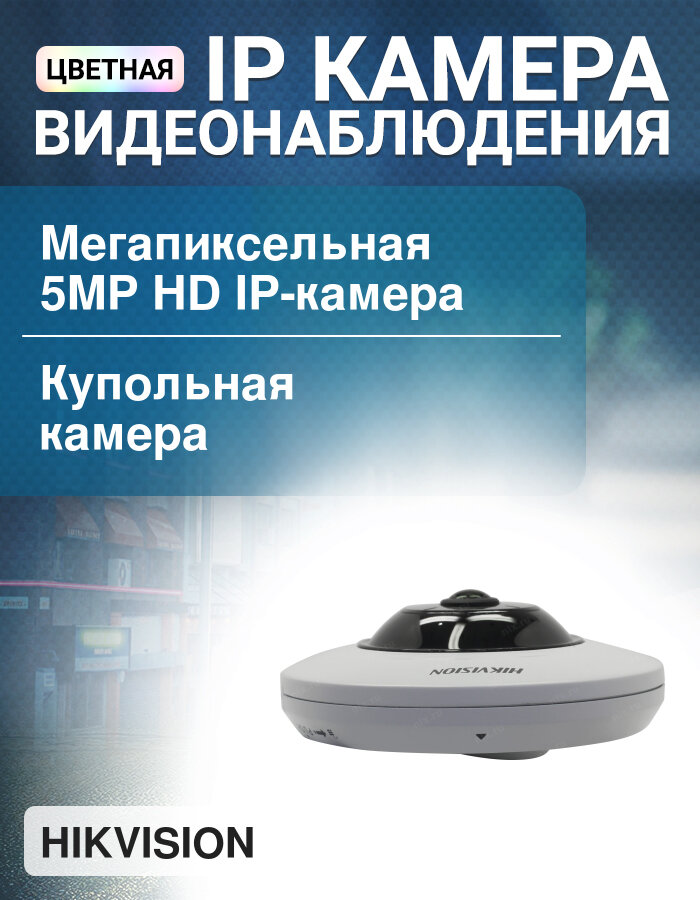 Видеокамера IP HIKVISION DS-2CD2955FWD-I (1.05mm) 5Мп fisheye c EXIR-подсветкой до 8м,1/2.5" Progressive Scan CMOS; fisheye объектив 1.05мм; угол обзо