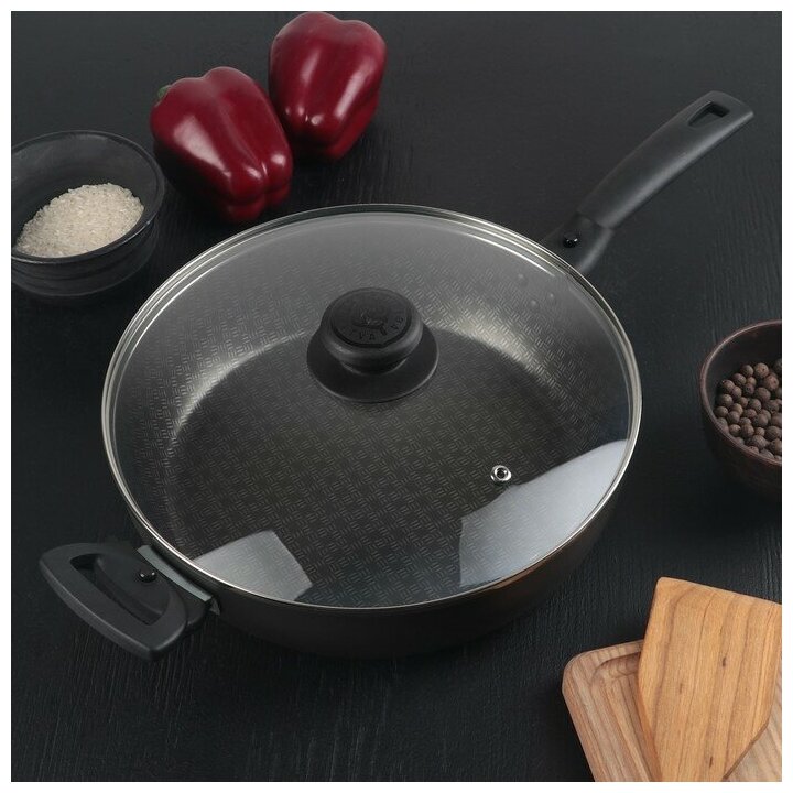 61672637 Сковорода 260мм,1 ручка,стеклянная крышка,антипригарное покрытие "Лён"