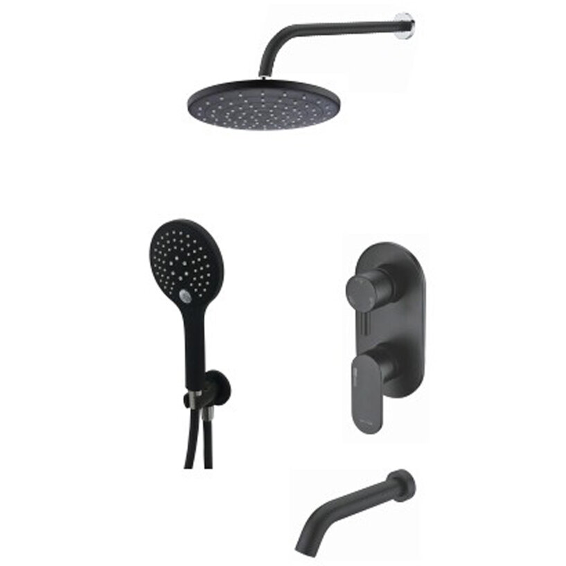 Встраиваемый комплект для ванны с верхней душевой насадкой, лейкой и изливом, черный, WasserKRAFT A177471