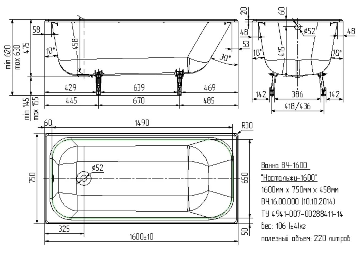 | Минусы: | Отсутствие покраски внешней стороны ванны |