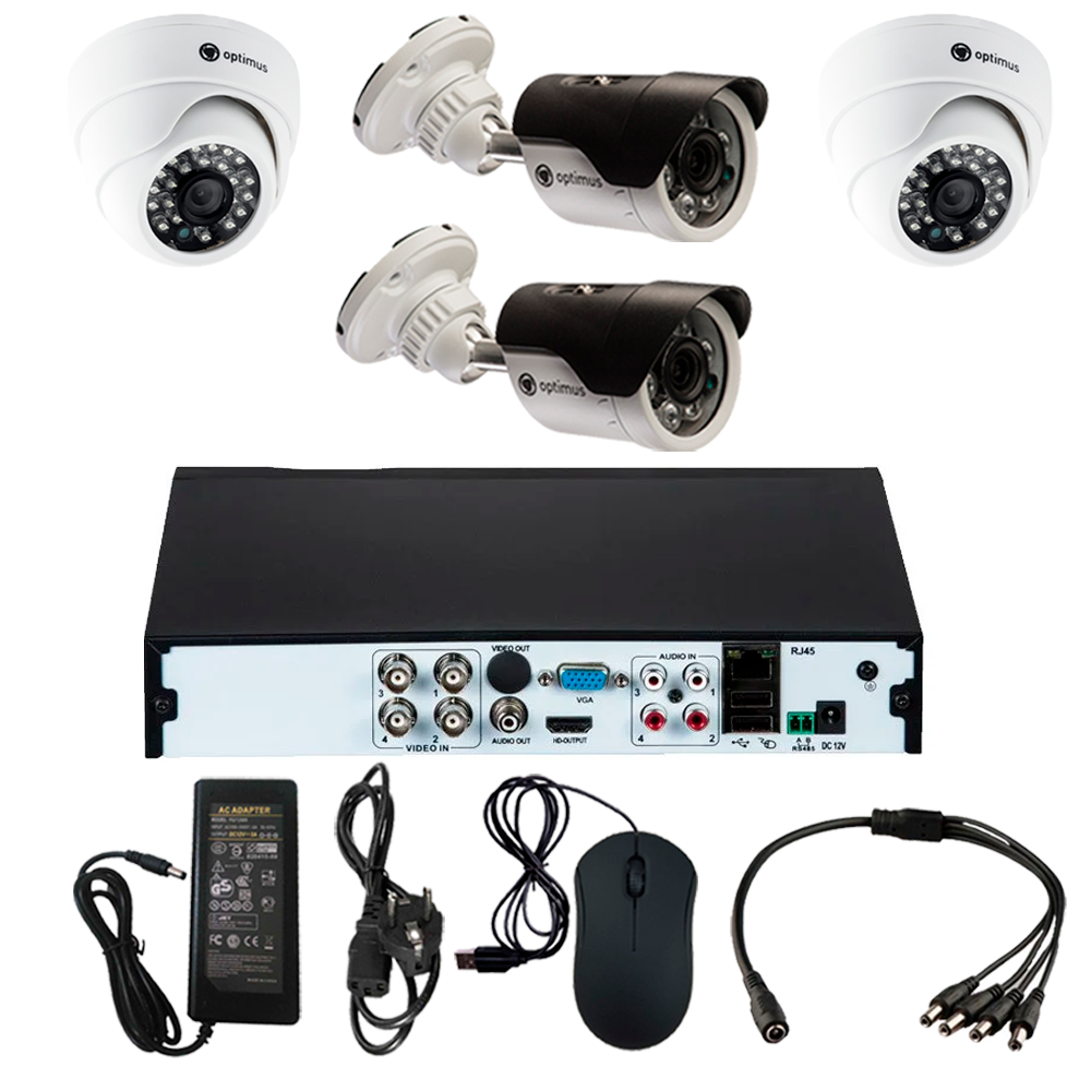 Комплект видеонаблюдения Optimus на 4 камеры - AHD 2.1Мп 1080P (2 помещение/ 2 улица) интересное: