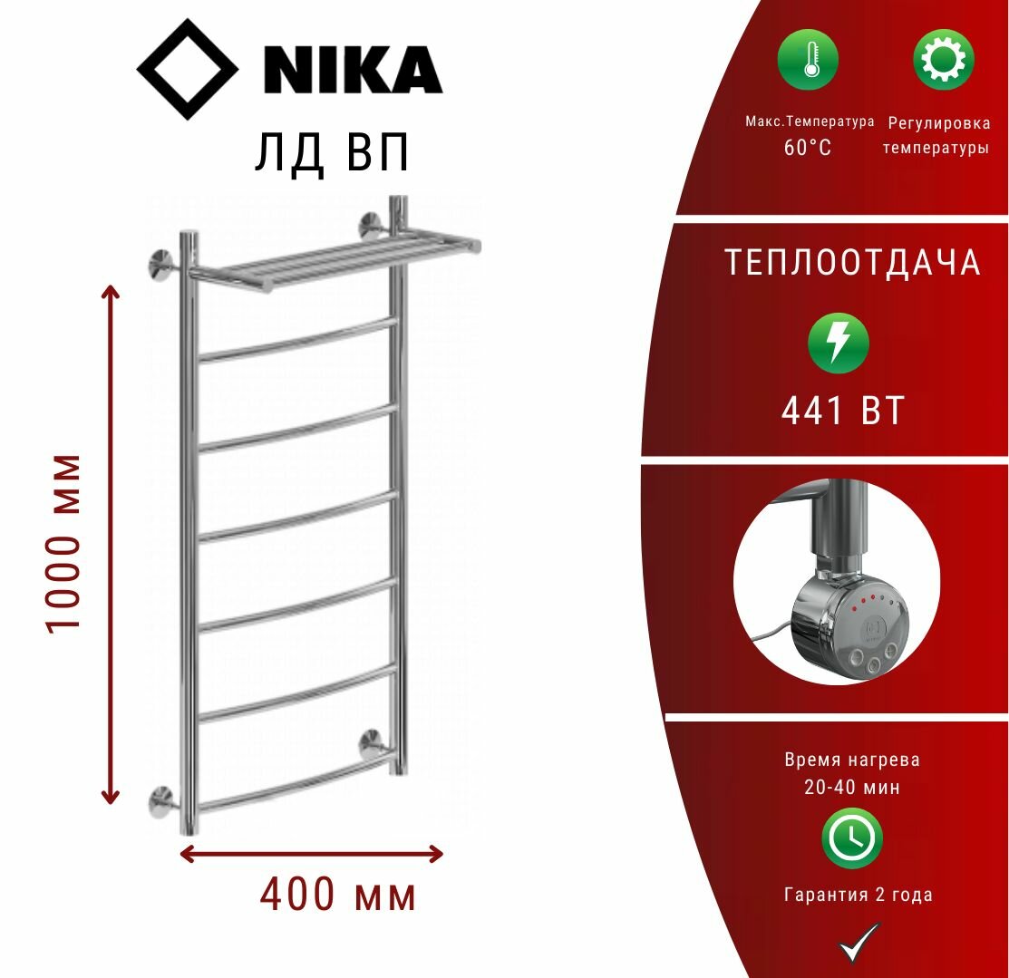 Полотенцесушитель электрический Ника Arc ЛД ВП 100/40-7 Э с полкой, левый тэн