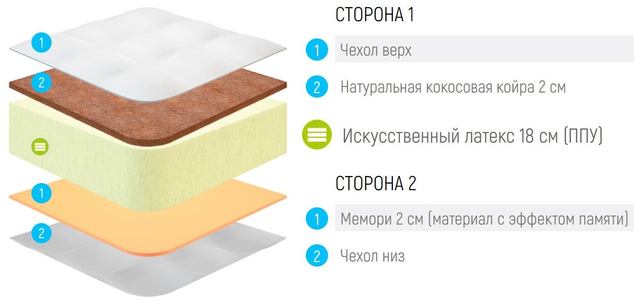 | Наполнитель | комбинированный (кокос + искусственный латекс + мемори) |