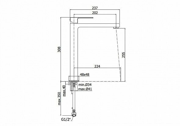 | Длина излива | 202 мм |