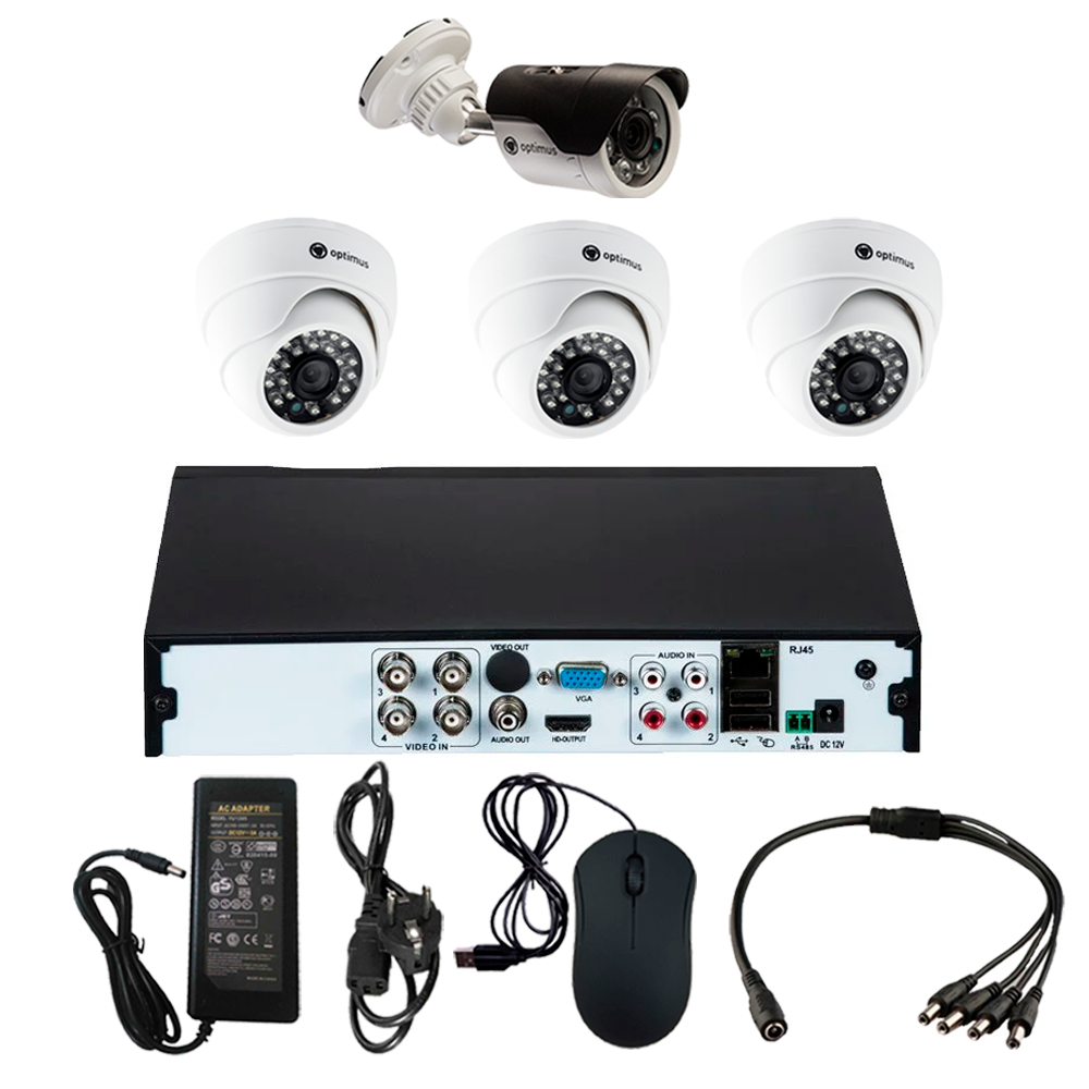 Комплект видеонаблюдения Optimus на 4 камеры - AHD 2.1Мп 1080P (3 помещение/1 улица) интересное:
