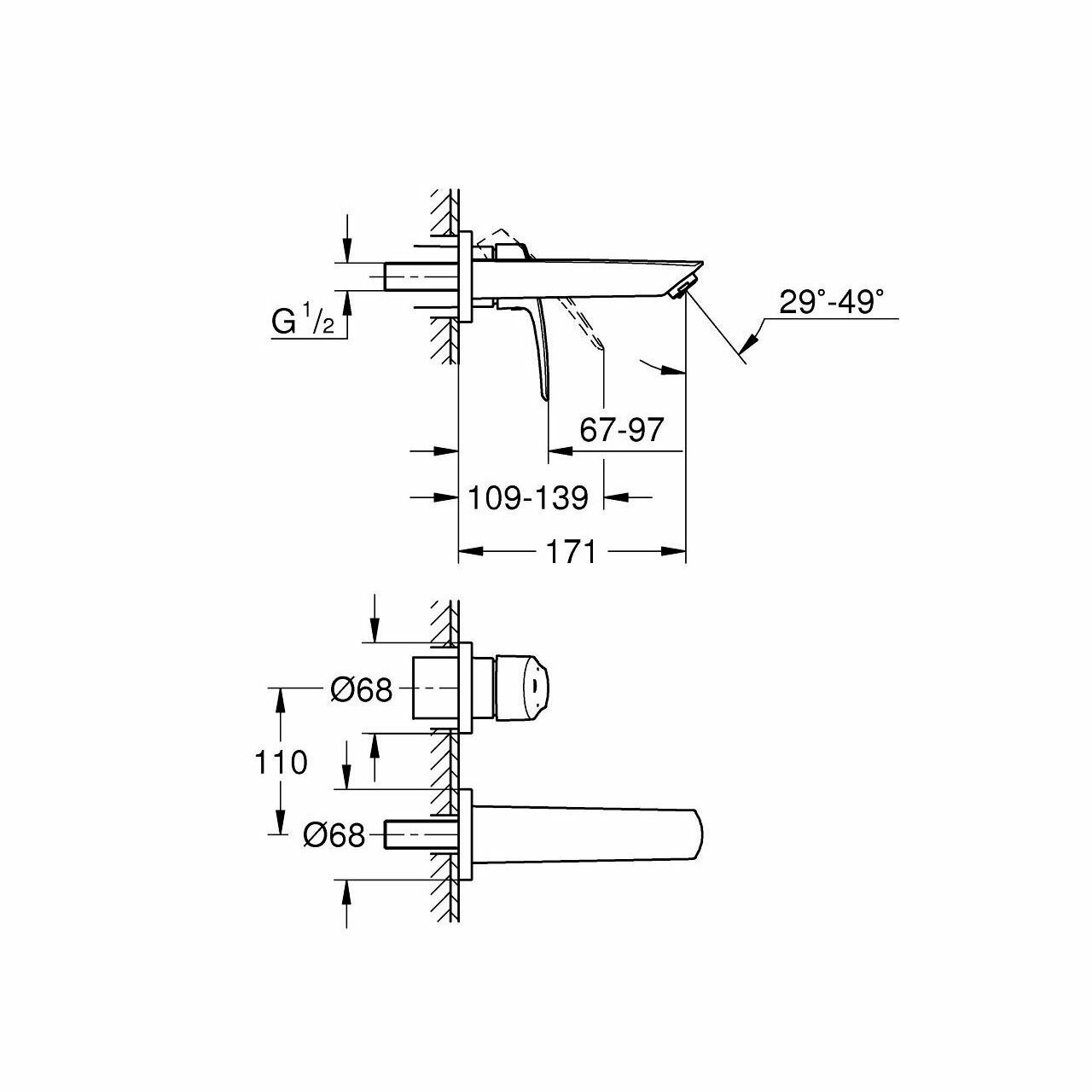 Смеситель для раковины Grohe Eurosmart S-Size настенный, встраиваемый, хром 29337003