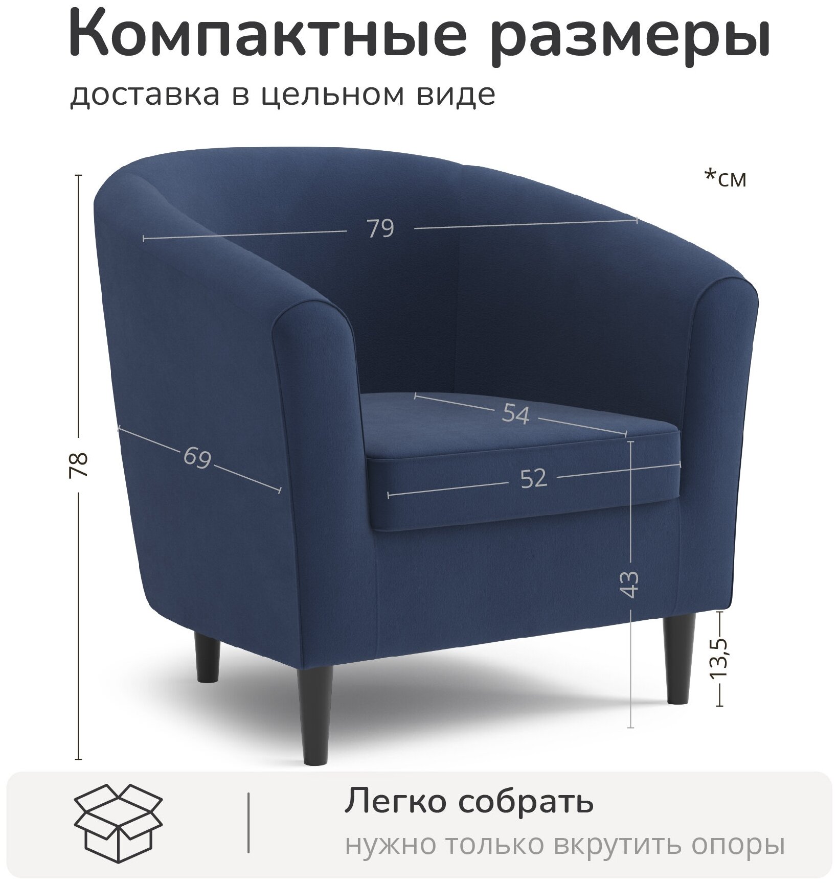 Кресло Salotti Веста, велюр, Ultra Midnight, цвет синий, 79х69х78 см интересное: