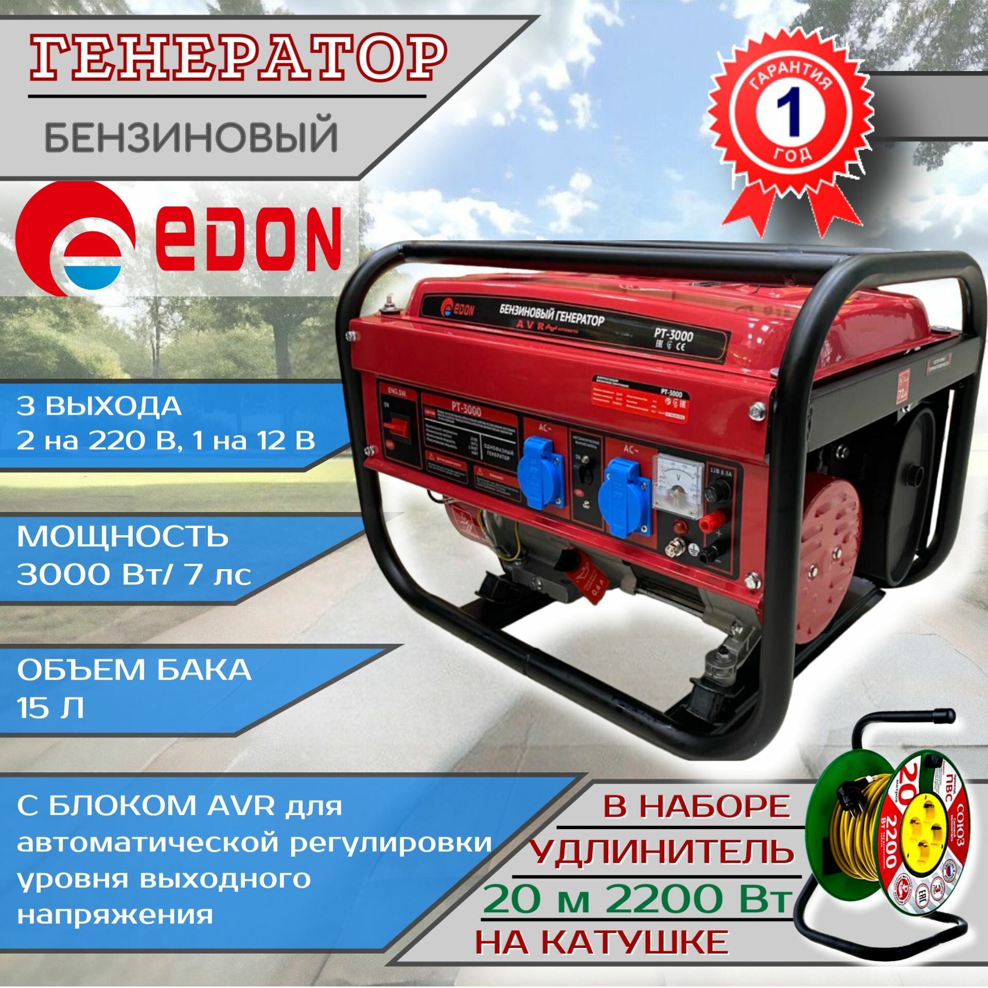 (Edon) Бензиновый генератор Edon PT-3000