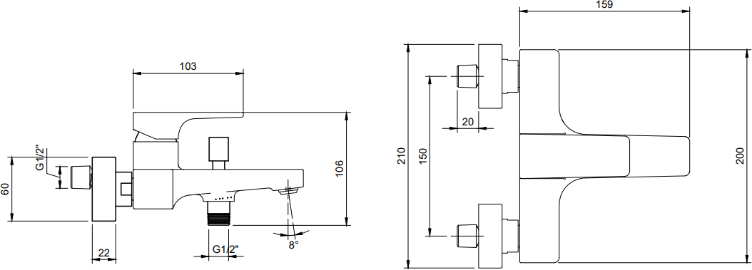 Смеситель Villeroy & Boch Architectura Square TVT125001000K5 для ванны с душем