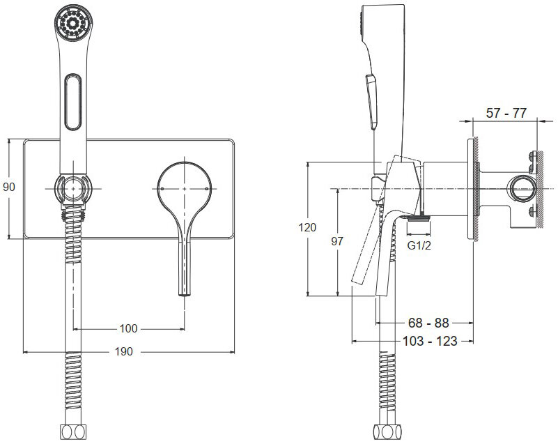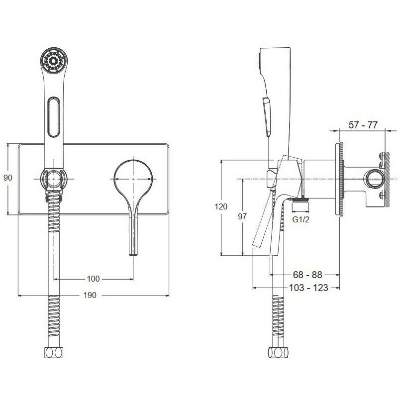 Комплект для гигиенического душа Jacob Delafon Elate (E25838-CP) встроенный (смеситель + гигиеническая лейка + шланг) хром