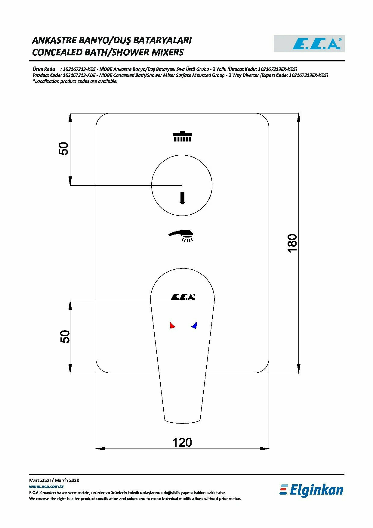 E.C.A 102167213EX-KDE NIOBE смеситель для душа 2 режима(внешняя часть)