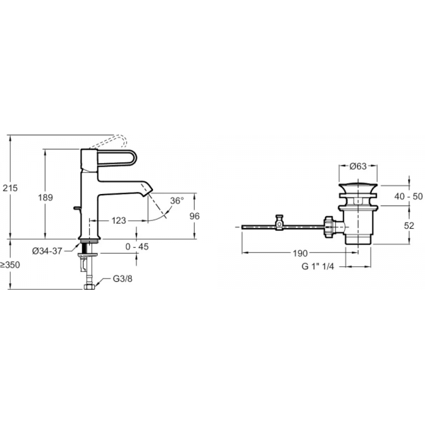 Смеситель Jacob Delafon Odeon Rive Gauche E21028-CP-CP для раковины с донным клапаном