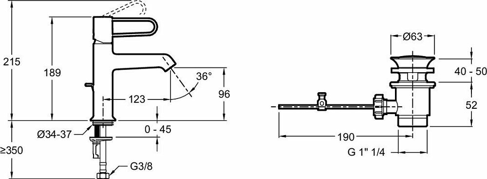 Смеситель для раковины JACOB DELAFON Odeon Rive Gauche с донным клапаном E21028-CP-CP, ручка хром (Якоб Делафон)