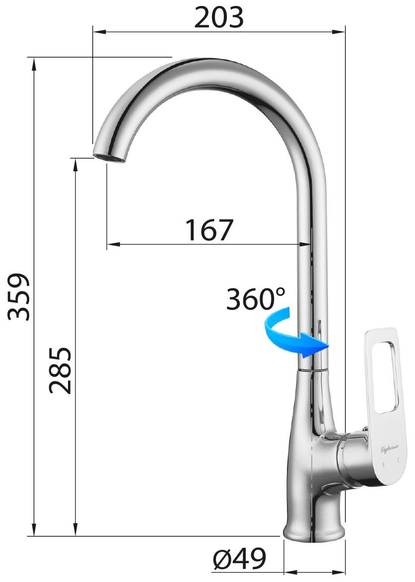 Высокий смеситель для кухни, мойки с поворотным изливом, латунный однорычажный ELGHANSA Brunn 5682306, хром