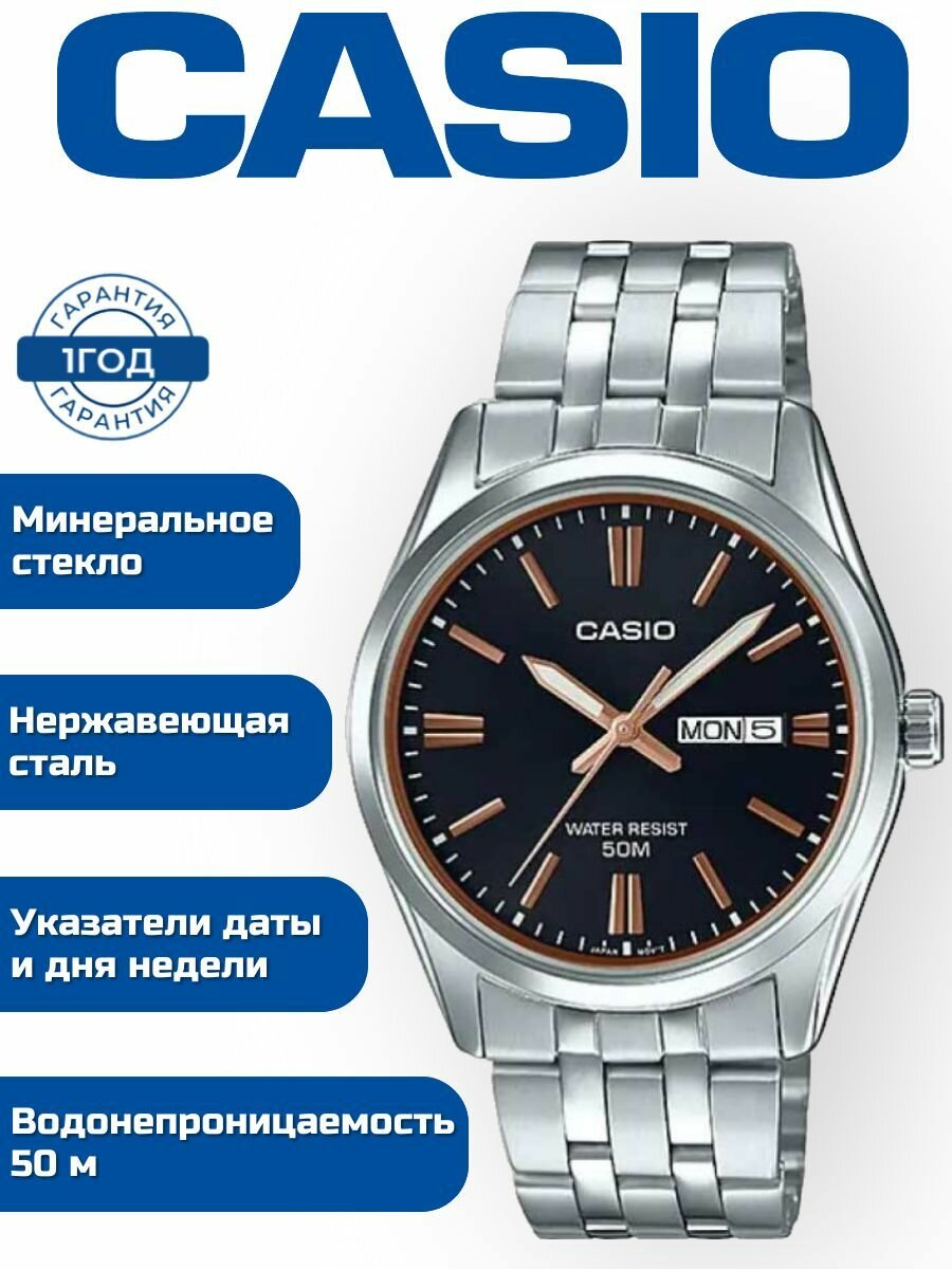Наручные часы CASIO MTP-1335D-1A2, черный, коричневый