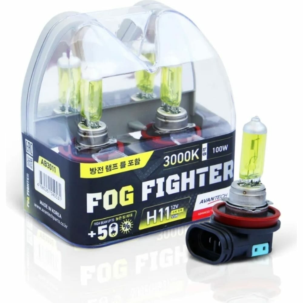 AVANTECH AVANTECH Лампа H11 12V 55W (100W) 3000K (ярко-желтый свет) FOG FIGHTER, комплект 2 шт. AVANTECH AB3011