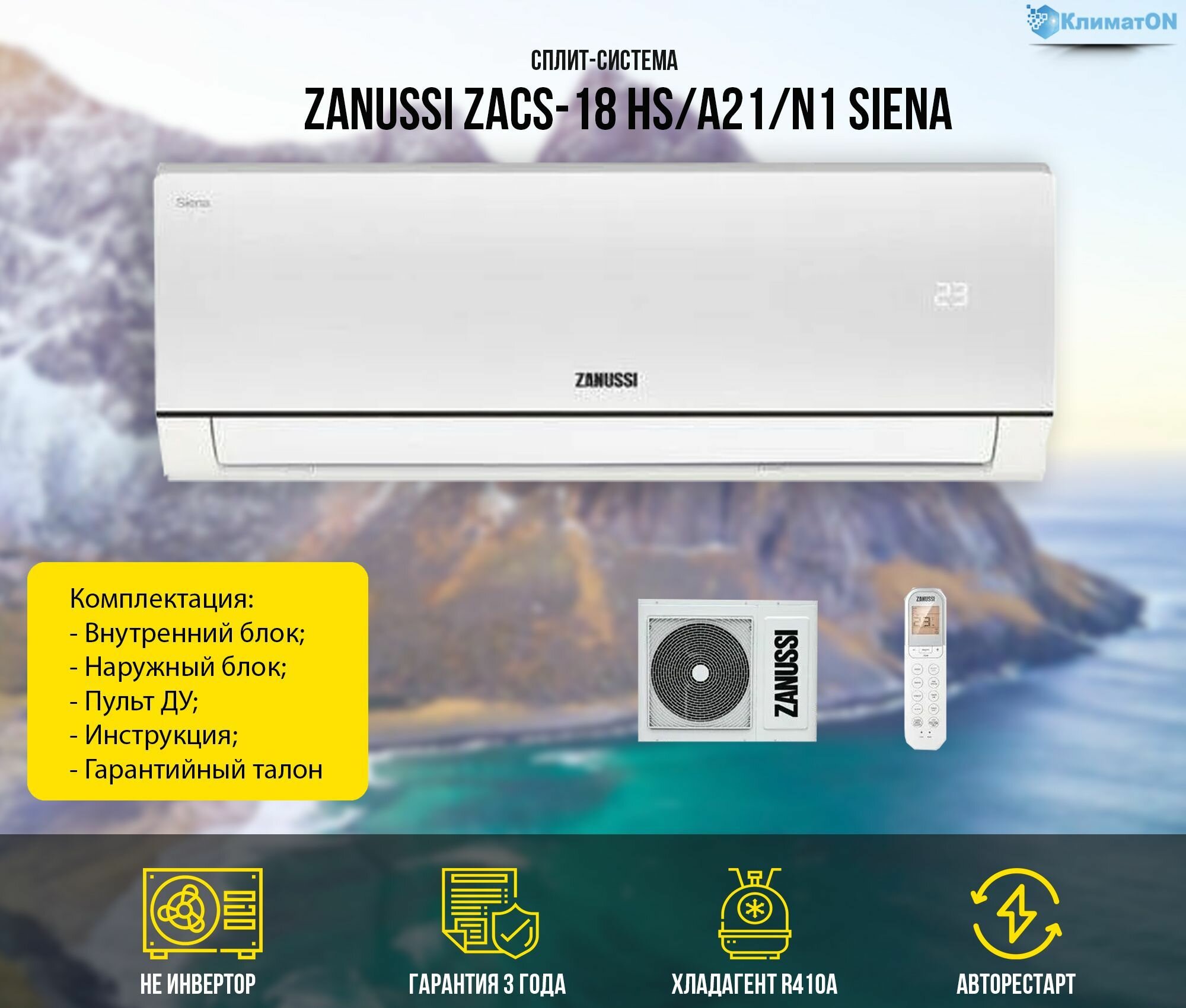 кондиционер zanussi siena zacs-07 hs/a21/n1out (внеш) + in (внутр)/китай